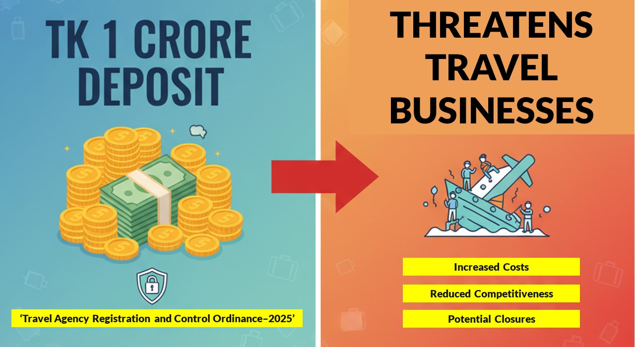 Travel industry leaders have warned that a proposed ordinance requiring online agencies to deposit TK 1 crore could force thousands of businesses to shut down, leaving hundreds of thousands unemployed...